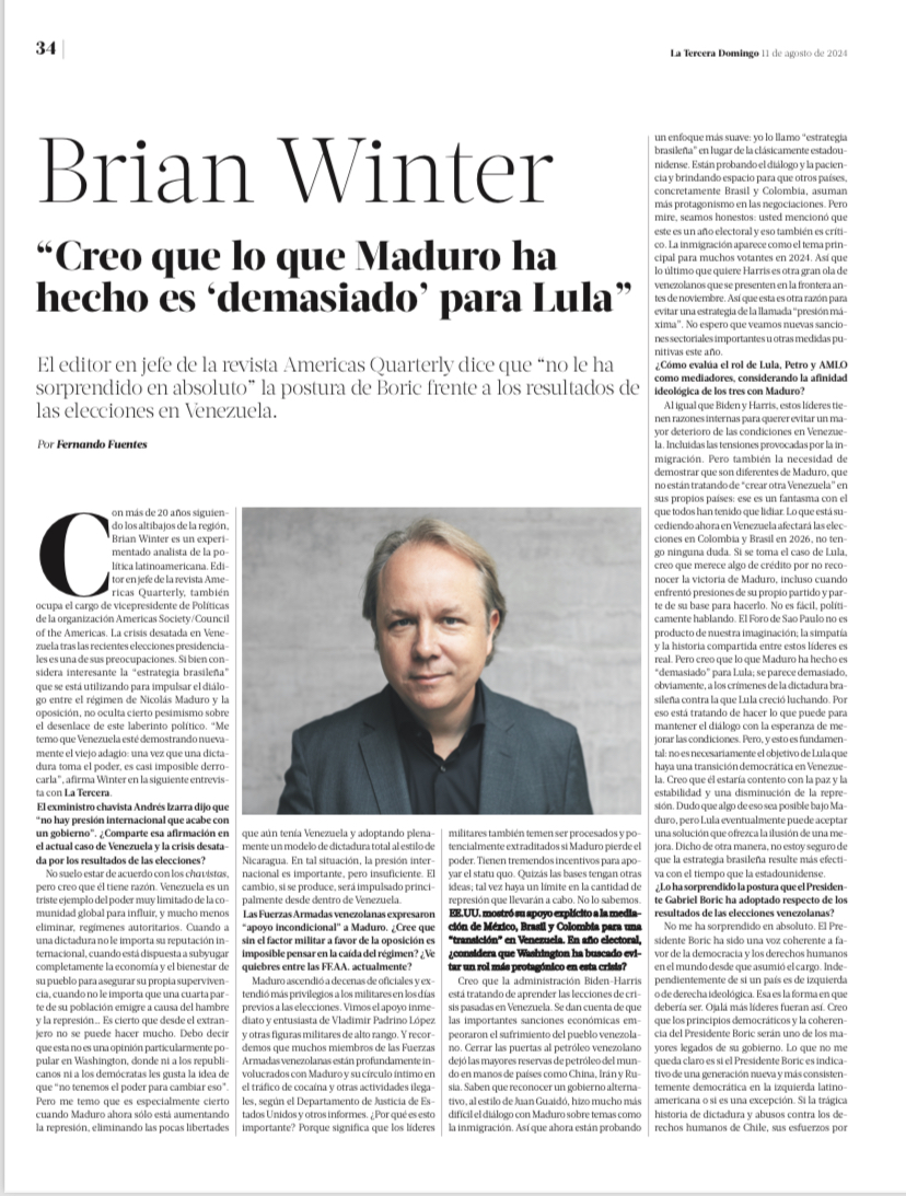 Fareed Zakaria’s GPS, CNN, 2024BBVA conference, 2024With Pelé at launch of Why Soccer Matters, 2014Brazil’s GloboNews, 2024Council on Foreign Relations, 2017Interview with Chile’s La Tercera, 2024Speaking to US CEOs in Rio de Janeiro, 2017Oppenheimer, CNN en Español, 2024